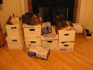And finally, since I gave Stripes some face time, here’s Onslow, King of the Files (my husband is changing offices):
