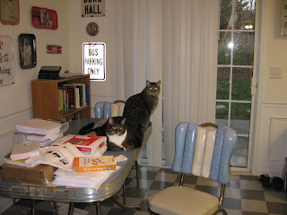 Our cat, Gin, is not allowed on the table, although lately I've noticed a rather lackadaisacal attitude on her part toward that particular rule, but the rest of the table decor looks very similar to mine!